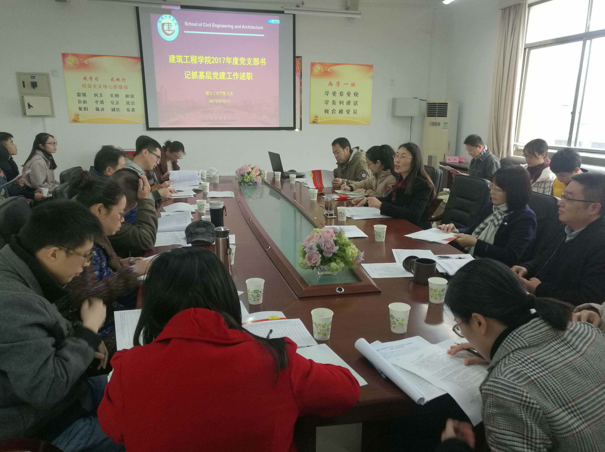 党支部书记抓基层党建工作书面述职报告》手册。会上有8个支部进行了现场述职,其中3个教工党支部,5个学生党支部,其余8个党支部此次采用书面述职方式。现场述职的8位支部书记精心准备了PPT,总结了2017年支部党建主要工作及实效、存在主要问题和2018年支部工作措施等。