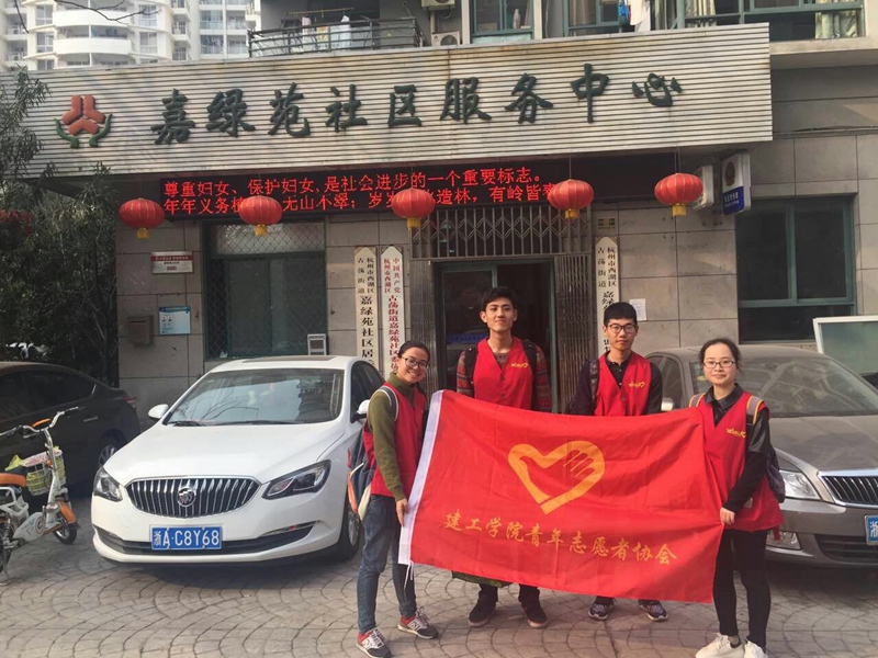 大学生志愿者于3月7日在西湖区嘉绿苑社区开展了“学雷锋,进社区,教英语,迎峰会”活动。