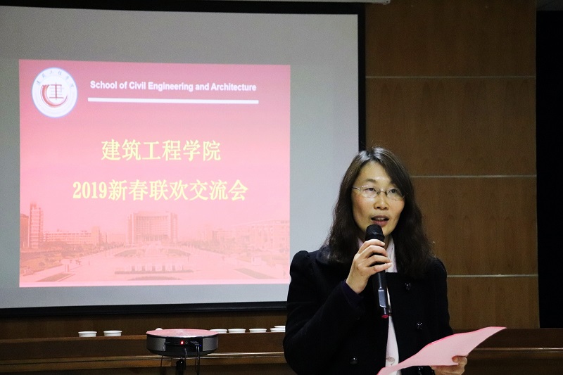 2019年1月9日下午2时,建工学院召开2019新春座谈会,共话奋斗历程,共享成功喜悦,共绘发展蓝图。座谈会在校工会一楼活动室举行,有五十余位老师到场参加。仰滢书记作了致辞并向参会人员送上新年的祝福。此次活动得到了校工会的大力支持。