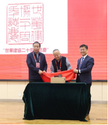 全国工程勘察设计大师、世界华人建筑师协会会长张伶伶致辞,随后在与会领导专家的共同见证下,张伶伶与山东省住房和城乡建设厅专员闫兴利、山东建筑大学校长于德湖一起,为“世华建协二十周年志庆”纪念印章揭幕。